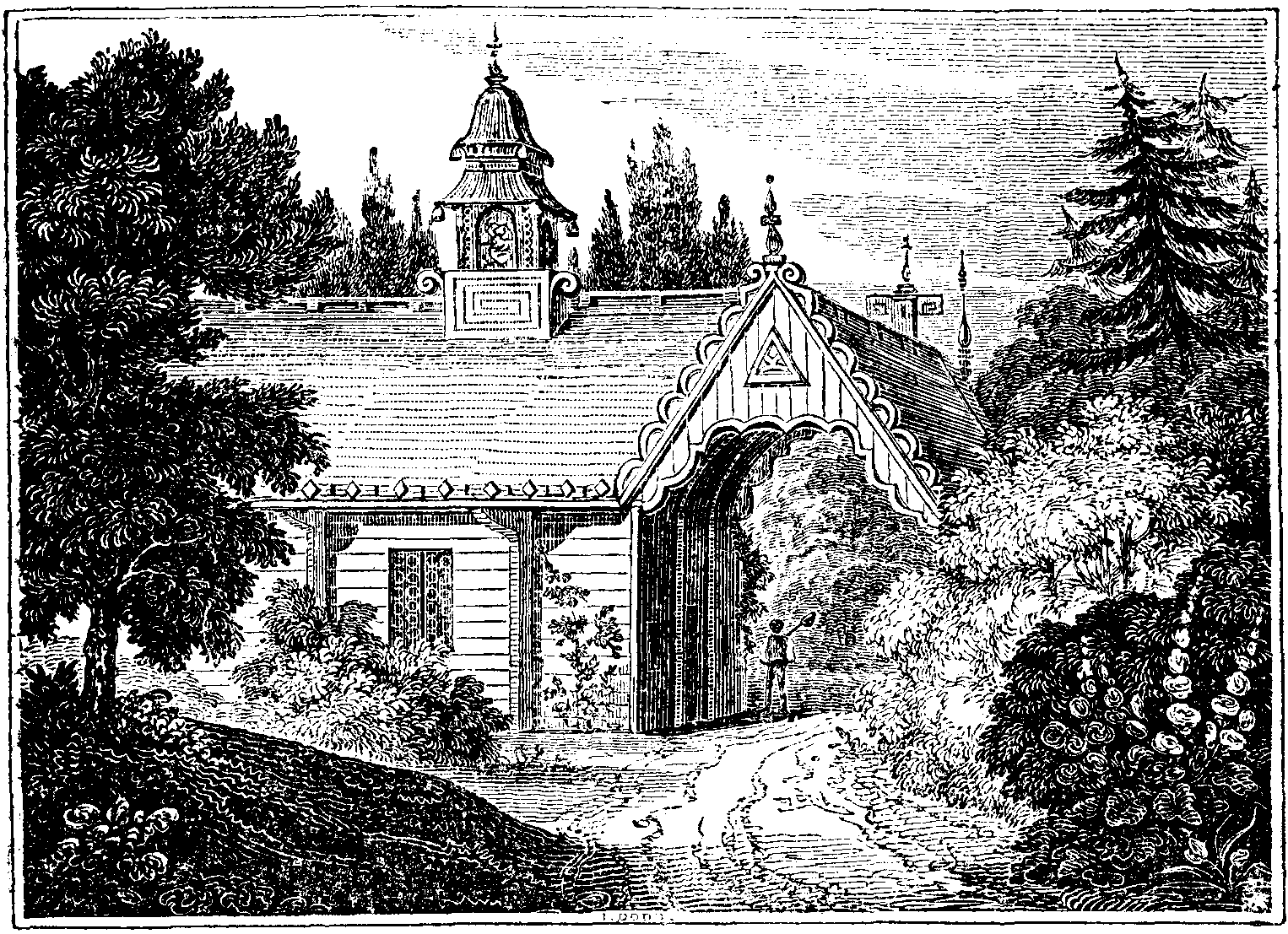 Many persons may be disposed to question the taste of the Boat-house in the Engraving. Its style is toy-like, and too artificial to suit our idea of picturesque propriety. It was built by direction of the late King, and its design or approval was probably one of his labours of leisure. It is less decorated and fantastical than other buildings in its vicinity, and perhaps deserves the faint praise of prettiness. Grave persons dislike the little bells attached to the lantern-like part of the roof, and consider them too closely allied to the cap of folly. Perhaps this objection to the building itself will only make the contiguous scenery more delightful. Of its varied character, the Engraving furnishes an accurate idea, since the original sketch was made in the course of last year. We could linger amidst these sylvan glories all the live long day, with a canopy of foliage just to shelter us from the heat of the meridian sun.