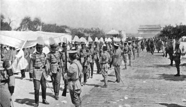 This is no place to enter into the controversial aspect of Yuan Shih-kai's action in 1898 which has been hotly debated by partisans for many years. For onlookers the verdict must always remain largely a matter of opinion; certainly this is one of those matters which cannot be passed upon by any one but a Chinese tribunal furnished with all the evidence. Those days which witnessed the imprisonment of Kwanghsu were great because they opened wide the portals of the Romance of History: all who were in Peking can never forget the counter-stroke; the arrival of the hordes composed of Tung Fu-hsiang's Mahommedan cavalry—men who had ridden hard across a formidable piece of Asia at the behest of their Empress and who entered the capital in great clouds of dust. It was in that year of 1898 also that Legation Guards reappeared in Peking—a few files for each Legation as in 1860—and it was then that clear-sighted prophets saw the beginning of the end of the Manchu Dynasty.