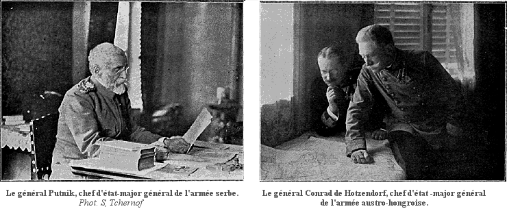UNE CRISE EUROPÉENNELA GUERRE DE L'AUTRICHE CONTRE LA SERBIELa tension qui s'était manifestée, depuis le drame de Sarajevo, dans les rapports entre l'Autriche-Hongrie et la Serbie a pris soudainement un caractère d'acuité inattendu, pour aboutir en quelques heures à une rupture des relations diplomatiques d'abord, puis à une déclaration de guerre. Jamais, depuis quarante ans au moins, la paix de l'Europe tout entière n'avait couru un péril pareil. Nous avons enregistré ici l'écho des démonstrations hostiles à la Serbie que l'assassinat de l'archiduc François-Ferdinand et de sa femme avait provoquées en Autriche-Hongrie, où, dès le premier moment, l'opinion avait nettement fait remonter jusqu'au gouvernement de Belgrade, accusé de favoriser plus ou moins ouvertement la propagande serbe en Bosnie-Herzégovine, la responsabilité de ce double crime. Rien, pourtant, ne pouvait faire prévoir les brutales conséquences de cet état d'esprit, justifié ou non. Le 23 juillet, à 6 heures du soir, le ministre d'Autriche-Hongrie à Belgrade, le baron Giesl, remettait au ministre intérimaire des Affaires étrangères du roi Pierre, M. Patchou, une note comminatoire, véritable ultimatum, dont le ton seul provoqua dans les chancelleries une stupéfaction profonde. Aux termes de cette note, l'Autriche exigeait de la Serbie, en substance: 1° La publication, au Journal officiel, d'une déclaration du gouvernement royal condamnant la propagande contre l'Autriche-Hongrie, exprimant le regret que des officiers et des fonctionnaires aient pris part à cette propagande, réprouvant toute tentative d'immixtion dans les destinées des populations de quelque partie de l'Autriche-Hongrie que ce soit, et menaçant de sévir contre quiconque irait à l'encontre des volontés ainsi manifestées: cette déclaration devait être portée à la connaissance de l'armée par un ordre du roi, inséré au bulletin militaire officiel;