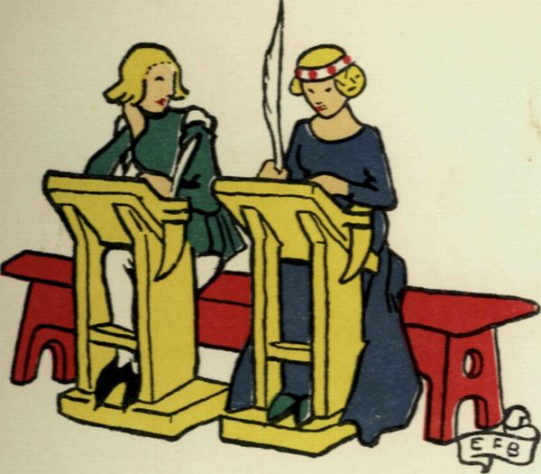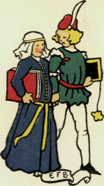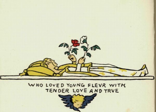 'Father! neither reading, writing, nor aught else will I learn, except I have Blanchefleur to be my fellow scholar.' To this the king consented, so the two children with great joy went hand in hand to school, and there by mutual aid and encouragement so quickly acquired the rudiments of learning that in no long time they were able to exchange love letters, which, being written in the Latin tongue, were not understood by the other scholars.