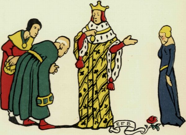 When the purchase was completed, these traders led Blanchefleur away to Babylon, and offered her for sale to its Admiral, whom she pleased so well that he bought her for ten times her weight in gold from these merchants, who, well pleased with the price bestowed, departed after thanks given to the Admiral, who, judging from her great beauty and rich attire that his new purchase must come of noble race, resolved to break his rule of oft-repeated marriage by plighting his troth once and for all to her and her alone. With this intent accordingly he sent Blanchefleur to the women's tower, appointing twenty-five maidens for her service and solace, seeing that she was ere long to be crowned Queen of Babylon.