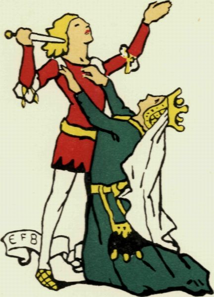 After this lament Fleur arose, and drawing a golden stilus from its case, he said, 'This stilus, her parting gift, and all now left to me of Blanchefleur, shall be my comfort by taking me from a world in which without her I cannot bear to live.' So saying, Fleur would have stabbed himself to the heart with the golden stilus, but the Queen his mother tore it from his hand, crying: 'What madness were it to lose your life for love! Be well assured that never thus could you come to Blanchefleur in her flowery meads; rather would you be sent to dwell in eternal grief and pain with Pyramus and Thisbe, who for a like offence were condemned to seek forever the comfort that they shall never find in love: take heart, therefore, my child, for I have skill to call your Blanchefleur back to life.'