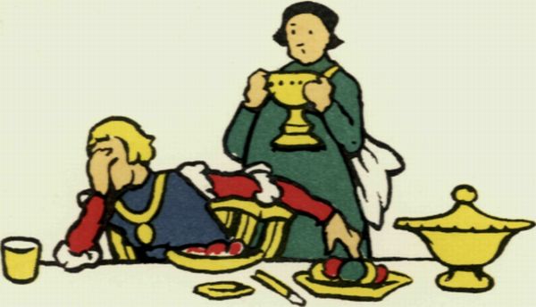 So the two went home and sate them down to table; but Fleur, marking that his servant had served him with the cup that was Blanchefleur's price, was so pierced to the heart with sorrow at the sight that the tears streamed from his eyes, and Lycoris, the hostess, in pity for his pain, said to her husband Daries, 'Quick, sir! let us clear the table, for this young man seeks other support than food.'