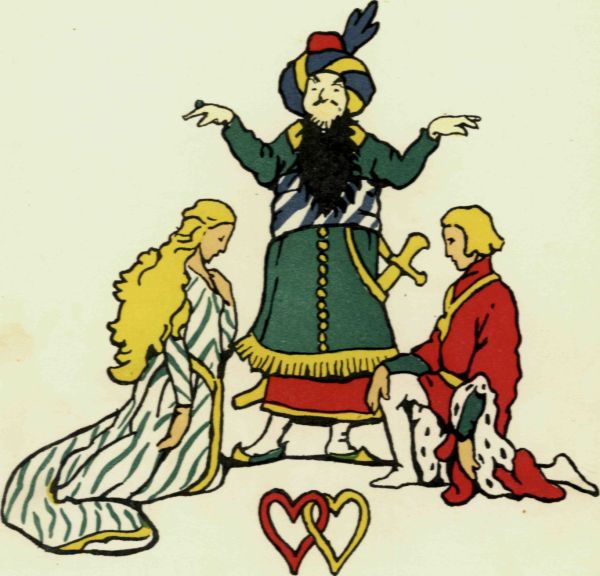 At the birth of his son, King Fenis rejoiced, and made great festivities; also he commanded that the infant should be nursed by a heathen, but brought up by the Christian captive, who, thus being charged with both children, tended them with such loving care that she scarce knew which was dearest to her, the King's son or her own daughter. So tended, the two children grew to be the sweetest and loveliest ever seen, and such was the love that they bore each one to the other that they could not endure to be parted.
