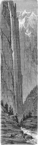 Yet, though so long a Parisian, and so comfortable in my theoretic pursuit of Progressive Geography, my leisure hours are unconsciously given to knitting myself again to past associations, and some of my deepest pleasures come from tearing open the ancient wounds. Shall memory ever lose that sacred, that provoking day in the Vale of Lauterbrunnen when the young mechanic in green serenaded us with his guitar? It had for me that quite peculiar and personal application that it immediately preceded my rejection by Miss Mary. The Staubbach poured before our eyes, as from a hopper in the clouds, its Stream of Dust. The Ashburtons, clad in the sensible and becoming fashion of English lady-tourists, with long ringlets and Leghorn hats, sat on either side of me upon the grass. And then that implacable youth, looking full in my eye, sang his verses of insulting sagacity: