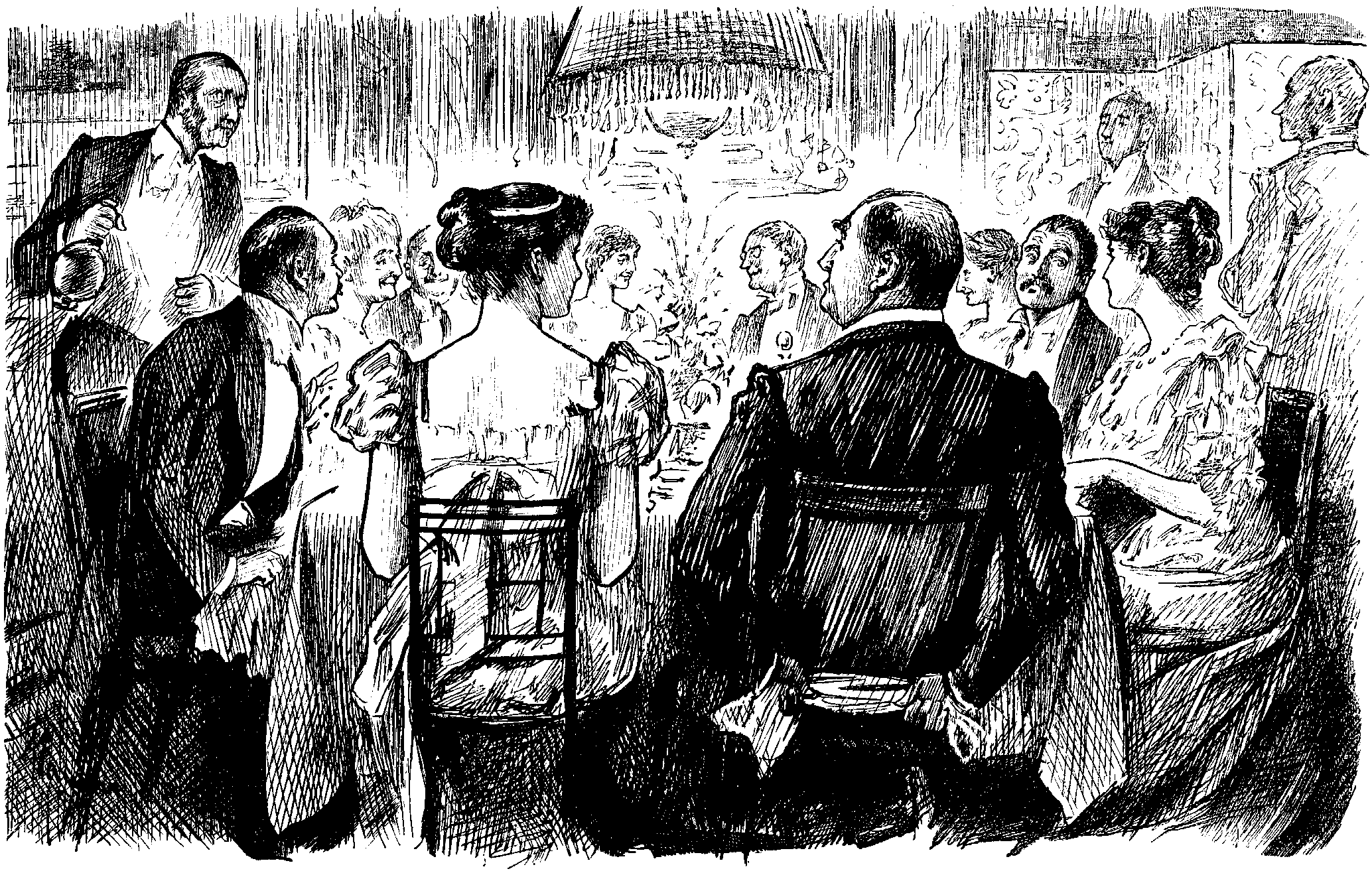 In the Fumoir.—Two drearily undecided men trying to make up their minds where to go next. Shall they stay at Antwerp for a day or two, or go over to Brussels, or go back to Calais and stay there, or what? "Calais is on their way home, anyhow," says one, and the other, without attempting to deny this, thinks "there may be more to see at Brussels." "Not more than there is here," says his friend: "all these places much about the same." "Well," says the first, yawning, "shall we stay where we are?" "Just as you please," says the other. "No; but what would you rather do?" ... "Me? oh, I'm entirely in your hands!" First man, who has had Green Chartreuse with his coffee and seems snappish, annoyed at this, and says, "it's dam nonsense going on like that." "Oh," says the second, "then you leave it to me—is that it?" "Haven't I been saying so all along!" growls the other. Second Undecided Man silent for a time, evidently forcing himself to come to a decision of some sort. At last he looks up with relief. "Well," he says, very slowly, "what do you think about it?" Whereupon they begin all over again. This indecision is catching—leave them.