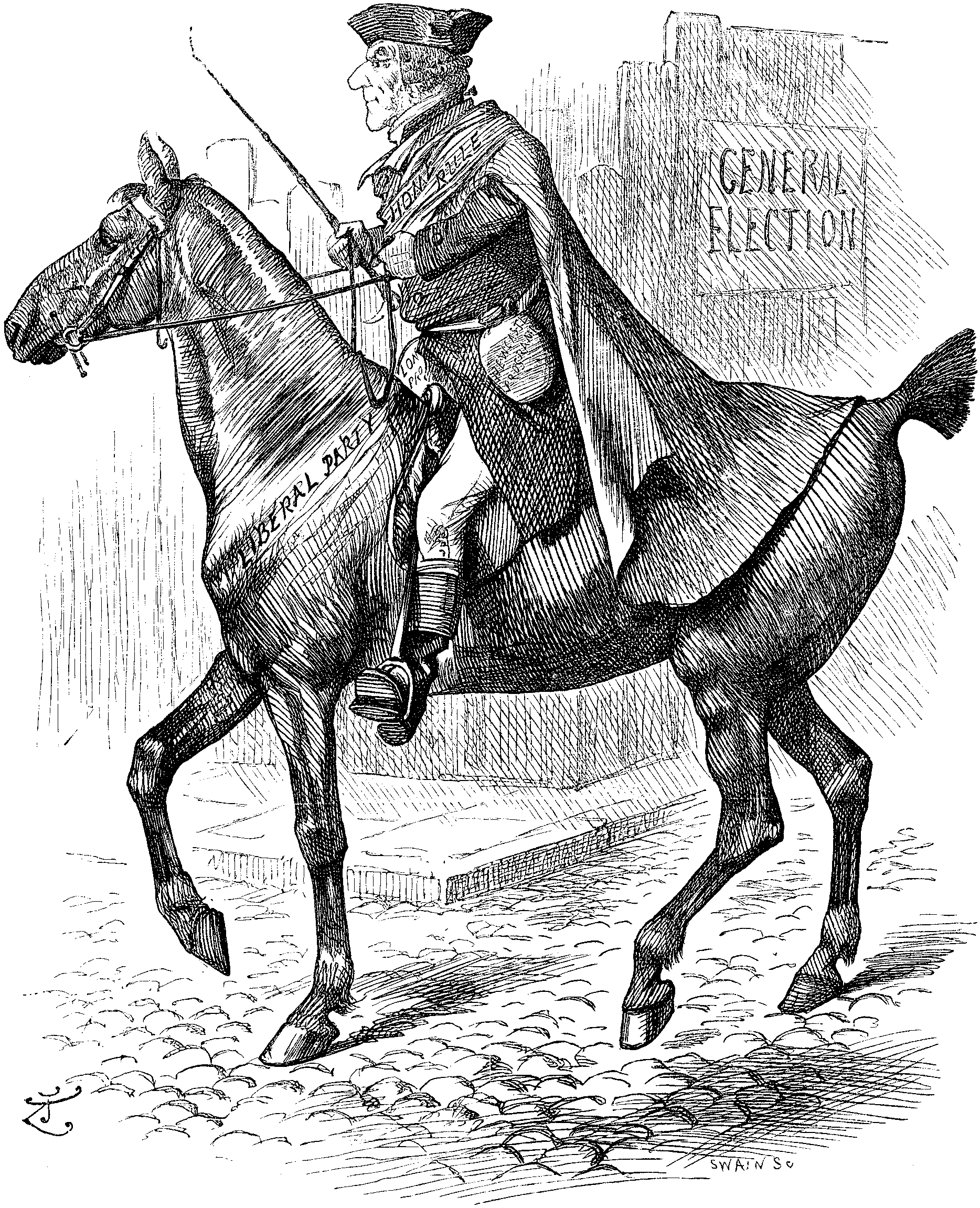 Dear Mr. Punch,—When writing to a Journal of light and leaders—or misleaders—last Friday, I kept "a little bit up my sleeve," so to speak, for the Brightest, Lightest, and Leadingest of all papers yclept the one, Sir, that bears your honoured name. After quoting from Mr. CHAMBERLAIN at Holloway (not in Holloway) on June 17, 1885, as a gentle reminder to Mr. GOSCHEN—their "Mr. G."—I observed, "Perhaps, however, there are reasons why the 'Egyptian Skeleton' prefers to forget the speeches of Mr. CHAMBERLAIN in 1885." It struck me that, having already an Egyptian Skeleton, we might have as its companion a Brummagem Skeleton, which everyone can see through, and this sketch I beg to submit to you, pro bono publico. Always, Mr. Punch, your most obedient "subject" (artistically),