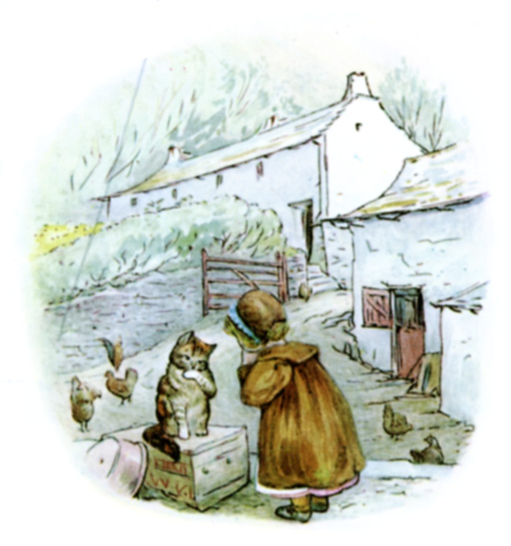 One day little Lucie came into the farm-yard crying—oh, she did cry so! "I've lost my pocket-handkin! Three handkins and a pinny! Have you seen them, Tabby Kitten?"