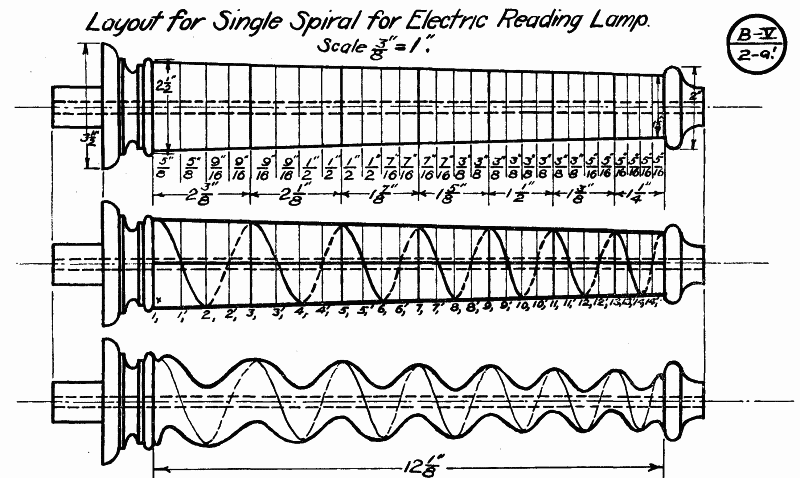 | CHAPTER XI Spiral Turning --Single Spiral, Straight Shaft --Tapered Shaft --Double Spiral, Tapered Shaft --Double Spiral, Straight Shaft --Double Groove Spiral, Straight Shaft |
