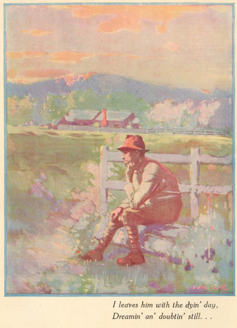 'Er Jim! These mothers! Lord, they're all the same.I wonder if Doreen will be that kind..Syd was the son 'oo played the reel man's game;But Jim 'oo sloped an' left no word be'ind,His is the picter shinin' in 'er mind.'Igh-spirited! I've 'eard that tale before.I sometimes think she'd take it rather kindTo 'ear that 'is 'igh spirits run to war.