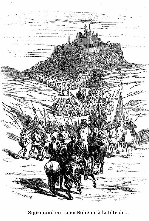 Note 13: (retour) Sigismond, arrivé à l'empire en 1410 par la mort de Rupert, voulut consolider par ce sacrifice son alliance avec Rome.
