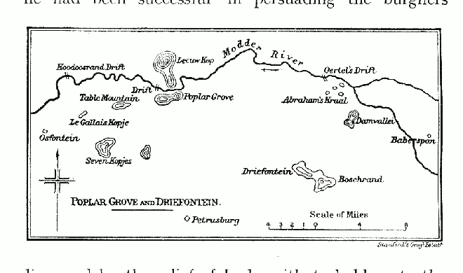 Sometimes a cause can be found a posteriori by groping in the dim and deceptive light cast by an effect: or a process of exhaustion and elimination may be set up in which the qualities common to each side are cancelled and the result attributed to the credit balance which will appear under one of the accounts. We saw for some months a gallant and well equipped if somewhat amorphous British Army impotently endeavouring, though in superior numbers, to make headway against an aggregation of Boer commandos, and checked at various points on an arc drawn wholly in British territory and extending in a circuit of over 500 miles from Ladysmith in Northern Natal through Stormberg and Colesberg to Kimberley and Mafeking; and at each extremity of the arc was a besieged city. Was the military art as taught in Europe founded upon error, or had the British Army been negligently instructed in it?