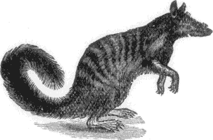 Let us take the Cydippe first (1, Fig. 9). I have six here, each in a separate tumbler, and could have brought many more, for when I dipped my net in the pool yesterday such numbers were caught in it that I believe the retreating tide must just have left a shoal behind. Put a tumbler on the desk in front of you, [pg 380] and if the light falls well upon it you will see a transparent ball about the size of a large pea marked with eight bright bands, which begin at the lower end of the ball and reach nearly to the top, dividing the outside into sections like the ribs of a melon. The creature is so perfectly transparent that you can count all the eight bands.