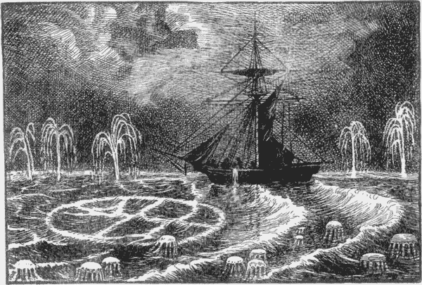 This lovely fairy-like globe, with its long floating tentacles and rainbow tints, was for a long time classed with the jelly-fish; but it really is most nearly related to the sea-anemones, as it has a true central cavity which acts as a stomach, and many other points in common [pg 382] with the Actinozoa. We cannot help wondering, as the little being glides hither and thither, whether it can see where it is going. It has nerves of a low kind which start from a little dark spot (ng) exactly at the south pole of the ball, and at that point a sense-organ of some kind exists, but what impression the creature gains from it of the world outside we cannot tell.