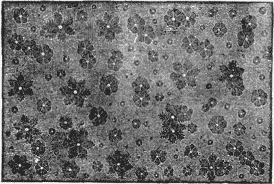 Look now at the alcoves, the homes of these animals; see how tiny they are and how closely they fit together. Mr. Gosse, the naturalist, has reckoned that there are six thousand, seven hundred and twenty alcoves in a square inch; then if you turn the leaf over you will see that there is another set, fixed back to back with these, on the other side, making in all, thirteen thousand, four hundred and forty alcoves. Now a moderate-sized leaf of flustra measures about three square inches, taking all the rounded lobes into account, so you will see we get forty thousand, three hundred and twenty as a rough estimate of the number of beings on this one leaf. But if you look at this tuft I have brought, you will find it is composed of twelve such leaves, and this after all is a very small part of the mass growing round my pool. Was I wrong, then, when I said my miniature ocean contains as many millions of beings as there are stars in the heavens?