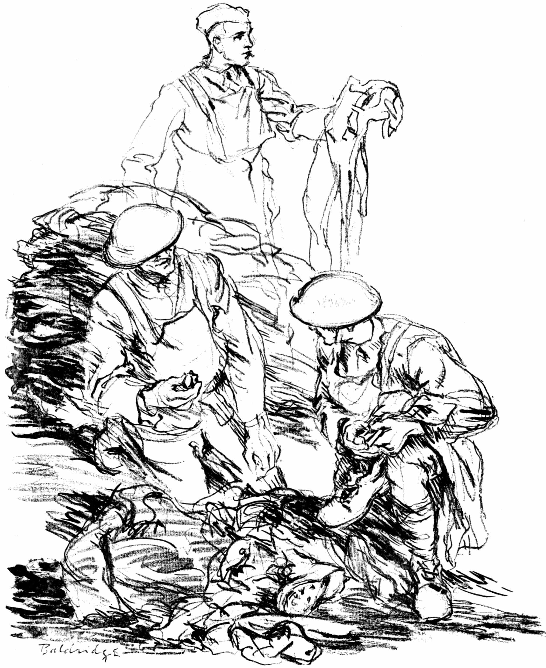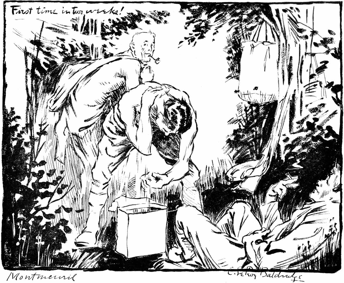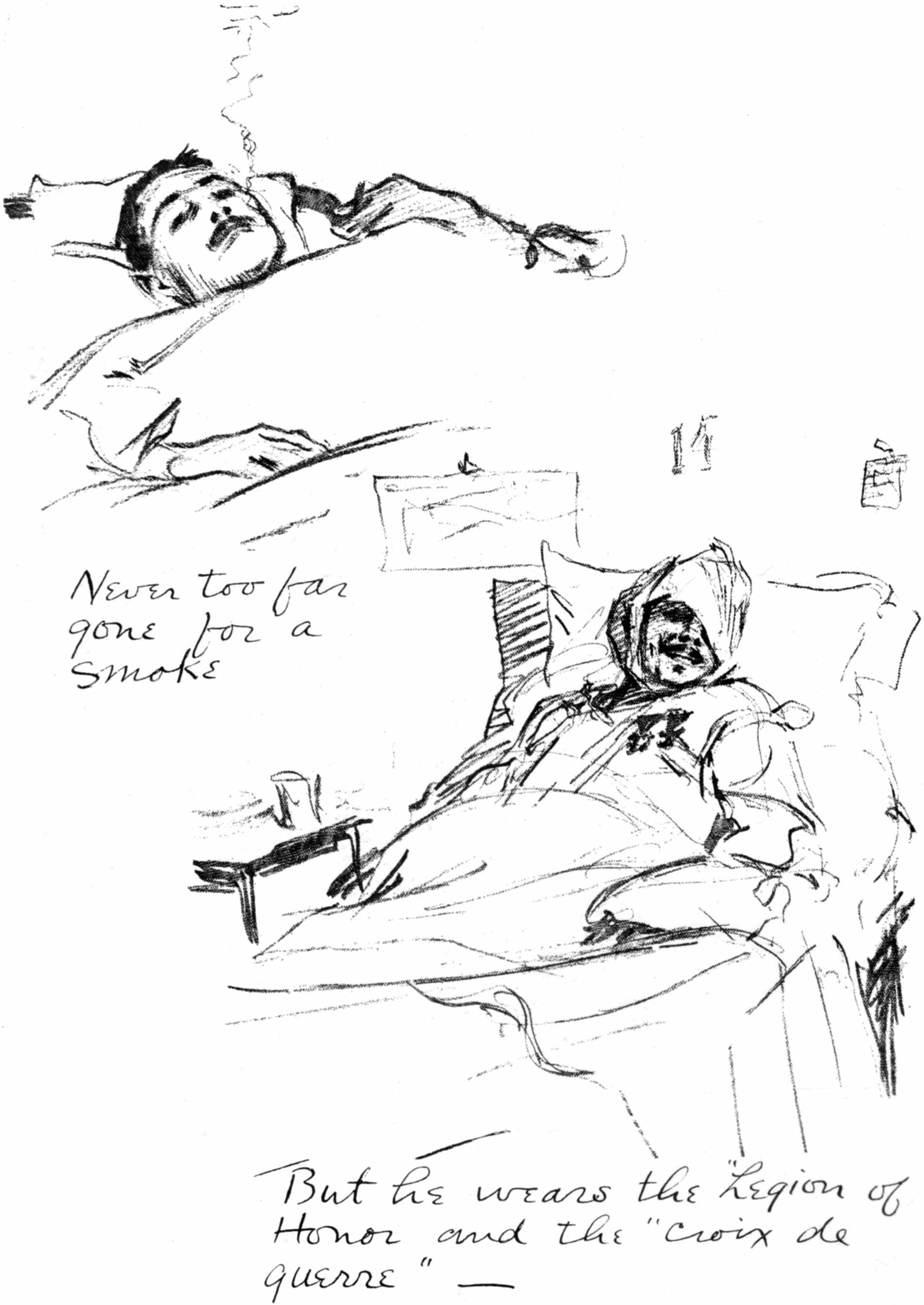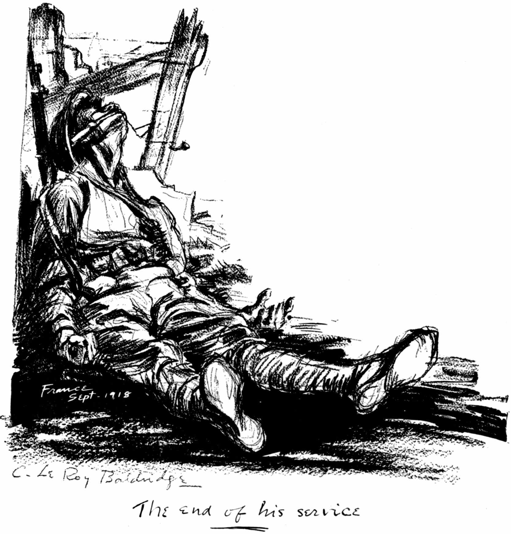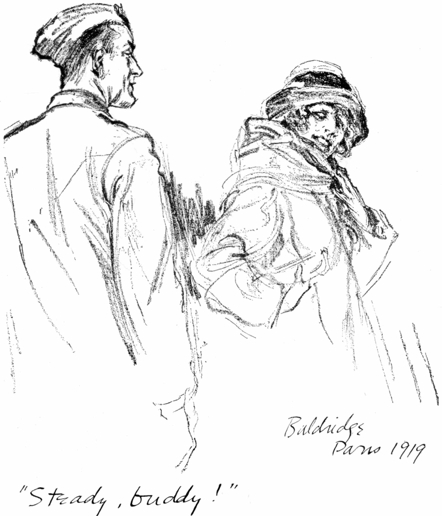 These Sketches were made during a year's service as a camion driver with the French army in the Chemin-des-Dames sector and a year's service with the A.E.F. as an infantry private on special duty with "The Stars and Stripes," the official A.E.F. newspaper. Most of them were drawn at odd minutes during the French push of 1917 near Fort Malmaison, at loading parks and along the roadside while on truck convoy, and while on special permission to draw and paint with the French army given me by the Grand Quartier Gènèral during the time I was stationed at Soissons. The rest were drawn on American fronts from the Argonne to Belgium as my duties took me from one offensive to another.