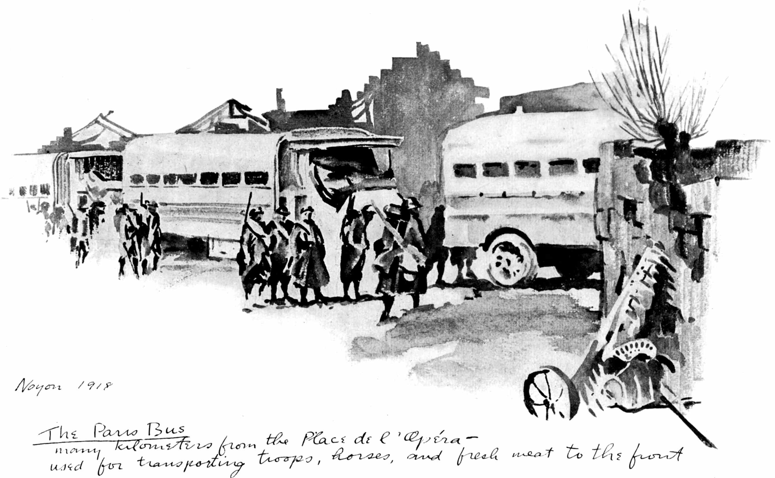 The Paris Bus—many kilometers from the Place de l'Opèra—used for transporting troops, horses, and fresh meat to the front