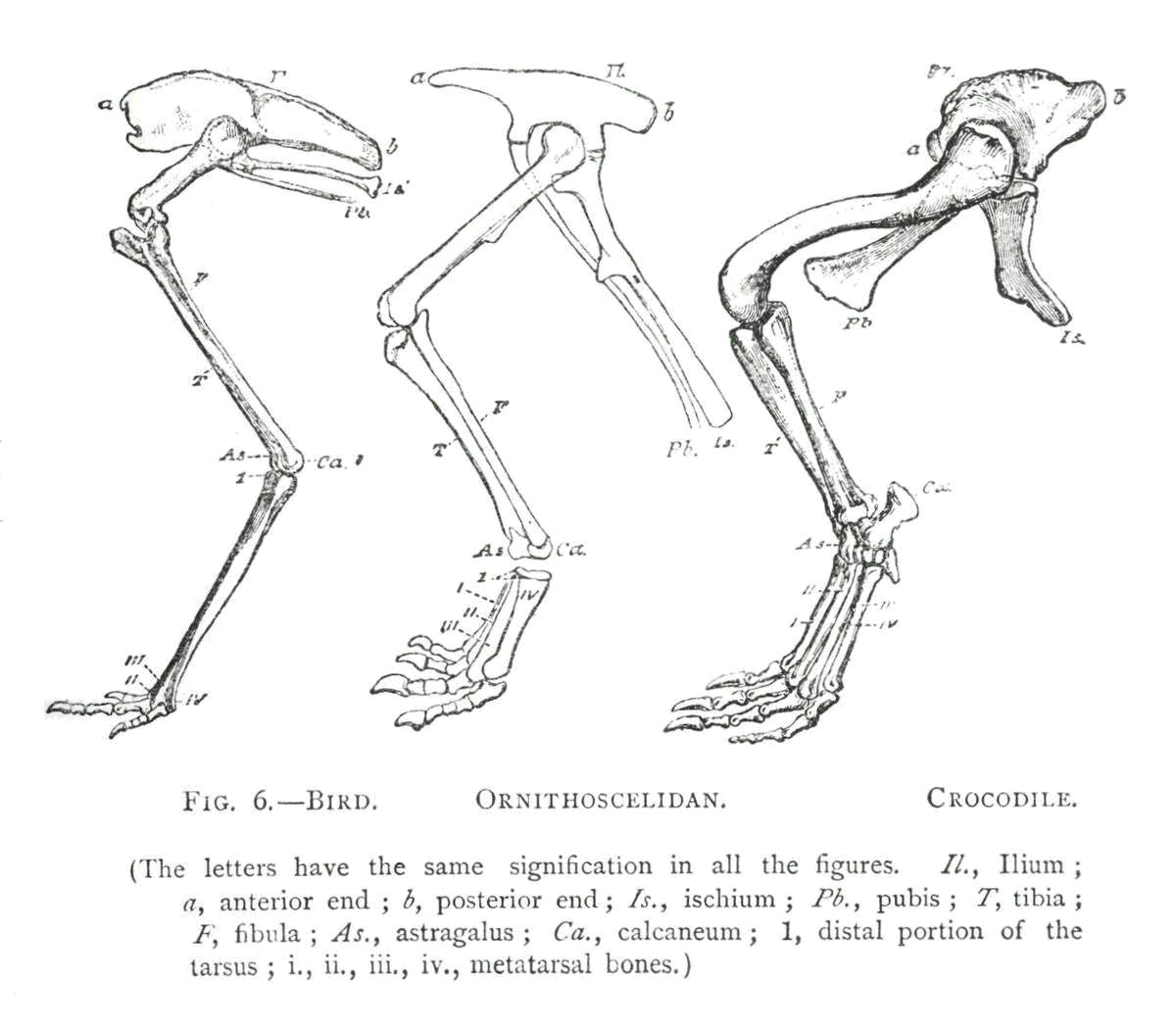 But it is in the structure of the pelvis and of the hind limb that some of these ancient reptiles present the most remarkable approximation to birds, and clearly indicate the way by which the most specialized and characteristic features of the bird may have been evolved from the corresponding parts in the reptile.