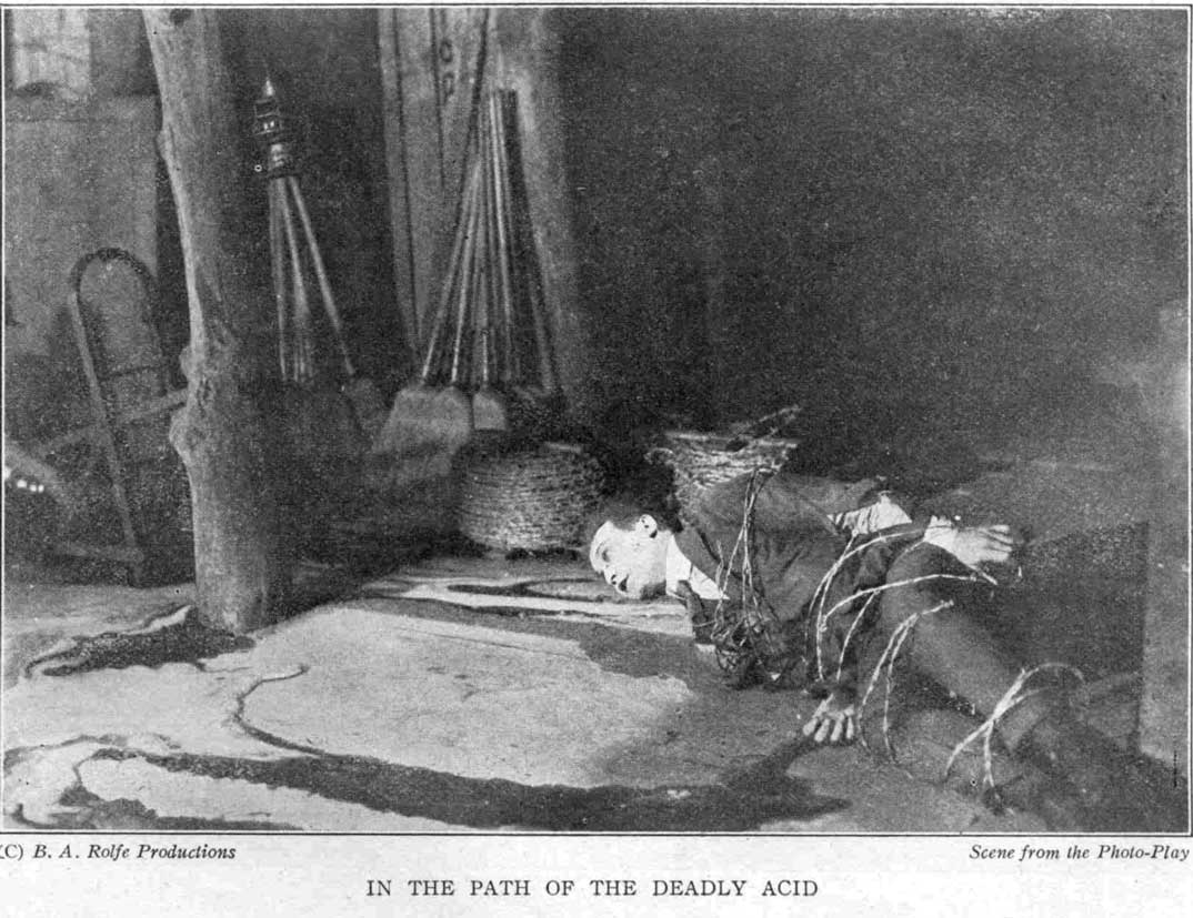 Brent whirled the combination and shot the bolts, and the door swung ponderously open, disclosing a rock-hewn cavern. Three walls of the cavern were lined with shelves containing inventions of all kinds—telegraph and telephone instruments, engine models, railroad-signaling and safety devices, racks of bottles containing dangerous chemicals and their antidotes—all conceivable manner of mechanical and scientific paraphernalia. It was literally a Graveyard of Genius—harboring the ghosts of a thousand inventors' dead hopes.