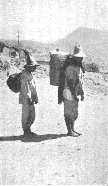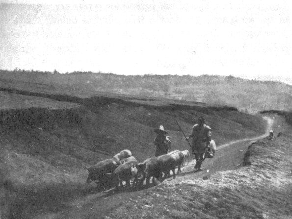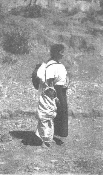 The road up to this summit was not good, but that down the other side was bad. The irregular, great blocks of limestone, covered with the smooth, dry, slippery coating, caused constant stumbling to our poor animals. From this valley we rose onto a yet grander range. Here we had our first Mixe experience. At the very summit, where the road became for a little time level, before plunging down into the profound valley beyond, we met two Indians, plainly Mixes. Both were bareheaded, and both wore the usual dirty garments—a cotton shirt over a pair of cotton trousers, the legs of which were rolled up to the knees or higher. The younger of the men bore a double load, as he had relieved his companion. The old man's face was scratched and torn, his hands were smeared with blood and blood stained his shirt. We cried an "adios" and the old man kissed my hand, while the younger, pointing to his friend said "Sangre, Señor, sangre" (Blood, sir, blood.) Vigorously they told the story of the old man's misfortune, but in incomprehensible Spanish. While they spoke three others like them, each bent under his burden came up onto the ridge. These kissed my hand and then, excitedly pointing to the old man, all talking at once, tried to tell his story. Having expressed our sympathy, we left the five looking after us, the old man, with his torn and bleeding face, being well in the foreground.