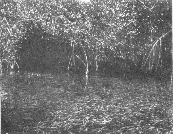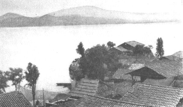 From this summit, our trail plunged downward into this sea of mists. When we reached its upper surface, which was plainly defined, little wisps of mist or cloud were streaming up along the furrowed channels of the mountain walls. As we entered the lake of cloud the sunlight became fainter, uprushes of cold mists struck us, gloom settled, denser and denser grew the fog, drops of condensed vapor dripped from the trees under which we passed. At the bottom of the valley, we could scarcely see a dozen yards in any direction. We were passing along meadows, like those of New England, with brakes, sunflowers, and huckleberries; here and there were little fields of wheat or peas. The fog was too dense for us to know whether we lost fine scenery. We saw nothing of the little villages through which we passed. On and on we plunged along the trail, until it began an ascent of a ridge, almost like a knife-edge, with steep slopes on both sides. When we had reached the summit of this ridge, we found the trail level, through a growth of oak trees which were loaded with bromelias and orchids. Though still dim, the light had brightened as we rose to higher levels. Graceful ferns and sprays of terrestrial orchids overhung our trail at every cutting or slope. One spray, which I plucked as I rode under it, was more than a yard in length, and its curiously colored brown and yellow flowers were strangely like insects in form. At one level summit of our ridge, we came upon a little whitewashed building of adobe, dome-topped, with no windows and but one little door. Pushing this open, I entered through a doorway so narrow that I had to remove my hat, and so low that I was forced to bend, and found myself in a little shrine with a cross and pictures of two or three saints, before which were plain vases filled with fresh flowers, the offerings of travelers. We added our spray of orchids before we resumed our journey.