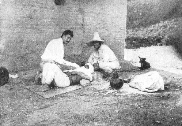 All rose early. Not only did we wish to make an early start, but the boys, too, were to make a journey. Our friends had agreed to make us some coffee and tortillas. We had made our preparations for starting and were waiting for our breakfast, when a shriveled and wrinkled old woman tottered up to beg the strangers to visit her sick son and prescribe some remedio. On our consenting to go with her, she caught up a stick of fat pine, lighted it in the fire, and with this blazing torch to light the way, preceded us to her house. Her son had been a strong and robust young man, but four months of lying upon his pole-bed had sadly reduced him. He was thin and pale, coughed sadly, and suffered with fever, chills, and dreadful headaches. He was taking medicines brought from Tehuantepec, but these seemed to have no effect and we were begged to suggest treatment. We advised continuance of the remedy she had been using, but also prescribed hot water taken in the morning and at night, hot water applications for the headaches, quinine for the chills and fever, and a digestive for the stomach trouble, and furnished these remedies from our own supplies. Having lighted us back to our lodging-place the old lady asked our charge. When we refused to receive payment from the poor creature, we noted an increased activity on the part of our host and hostess; a bit of cheese