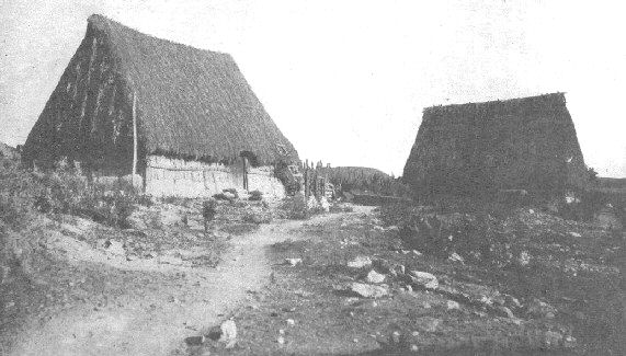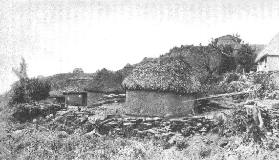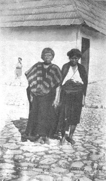 The road, after passing the hacienda, ascended almost constantly for many miles. We passed clumps of yuccas. As we mounted we faced a strong and cutting wind, and were glad when any turn in the road gave us a moment's relief. The final ascent was sharp and difficult, up a hill of red or purple slate, which splintered into bits that were both slippery and sharp to the feet of our poor animals. Just as the sun was setting and dusk fell, we reached the miserable pueblo of Santa Maria Albarradas. It was situated on a terrace or shelf, and its little houses were made of red or purple adobe bricks, and thatched with grass. Little garden patches and groups of cultivated trees surrounded the houses. The church was little larger than the dwellings, and was constructed of the same clay, thatched with the same grass. Near it was the town-house. We summoned the presidente, and while we waited for him, the men, women, and children of the town thronged around us and watched our every movement, commenting the while on our actions and words. When the presidente came, we made known our wants and soon had supper for ourselves, food for our animals, a shelter for the night, and a mozo as guide for the morrow. The town-house was put at our disposition; it was sadly in need of repairs, and consisted of two rooms, one larger than the other. In the larger room there was a long and heavy table, a bench or two, and some wooden chairs. We slept upon the ground, and long before we rolled ourselves up in our blankets the wind was blowing squarely from the north. The sky was half covered with a heavy black cloud; as the night advanced, it became colder and colder, the wind cutting like a knife, and while we shivered in our blankets, it seemed as if we had been born to freeze there in the tropics.
