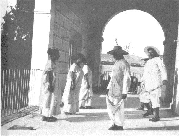 At the first indian house, we asked if we might have shelter for the night. The owner cordially answered, "Como no? señores," (Why not? sirs). He explained, however, that there was nought to eat. After eating elsewhere, we made our way back to our lodging-place, a typical Zapotec hut, a single room, with dirt-floor, walls of canes or poles, and thatch of grass. The house contained a hammock and two beds of poles, comforts we had not known for days. I threw myself into the hammock; Ernst lay down upon one of the beds; the man and woman, squatting, were husking corn for our horses; a little girl was feeding a fire of pine splints, built upon the floor, which served for light. As they worked and we rested the man asked that question which ever seems of supreme importance to Mexican indians, "Como se llama Ud. señor?" (What is your name, sir?). "Ernst," replied our spokesman, to whom the question was addressed. "Y el otro?" (And the other?), pointing to me. I replied for myself, "Federico." The man seemed not to catch the word and badly repeated it after me. "No, no," said the much quicker woman, "Federico! Federico! si, señor, nosotros tenemos un Federico, también," (Yes, sir, and we have a Frederick, also). "Ah, and where is he?" "He will come, sir; we have four boys, Luca and Pedrito, Castolo and Federico; Federico is the baby; the little girl, here, is between him and Castolo; they are working in the coffee-field, but they will soon be here." At nine o'clock the little fellows appeared. They lined up in the order of age, placed their hands behind them, and waited to be addressed. Castolo, then about ten years of age, most pleased me, and I asked him, among other things, whether he could read and write. His father answered for him, that he could not read or write; that the opportunities were not good; but that he believed Castolo could learn, that he had a good mind. At this point the mother spoke to her husband in Zapotec. Some argument ensued, in which at last she triumphed. Turning to me, the man said: "She says you may have Castolo; you may take him to your country and there he can learn to read and write and whatever else you wish." It was not altogether easy to refuse this gift; finally I replied that we had a long journey ahead and that Castolo would weary on the road; that he had better wait until some later time.