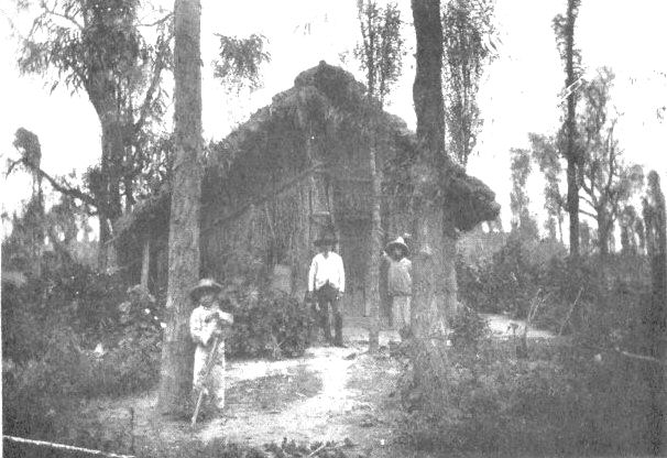 As it was now darkening we hurried to the meson of the village. The old lady in charge received us with suspicion; she could not feed us and refused to receive us into the house for the night; she would permit us to sleep outside, in the corridor—which we might have done without asking permission. At this moment, the doctor's friend remembered that he knew a man here and went out to reconnoitre; he soon returned and led us to his friend's house, where we were well received. A supper of eggs, tortillas, and chocolate was soon served. Before we had finished the moon had risen and by its light the doctor and his friend started on their return to town. We slept on beds, made of boards laid upon sawhorses, in a grain store-room, where rats were running around all night long.