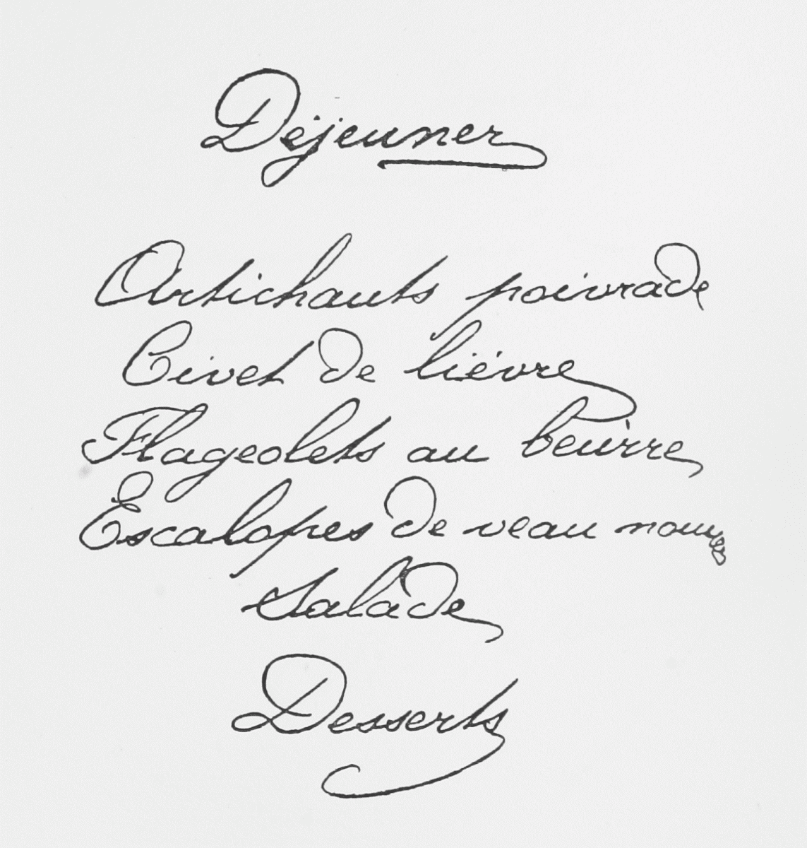 Before we left the General signed for me the menu of the lunch, pointing out to me, however, that if I were at any time to show the menu to the village policeman, I must assure him that the hare which figured thereon had been run over at night by a [Pg 63]motor-car and lost its life owing to an accident, otherwise he might, he feared, be fined for killing game out of season!