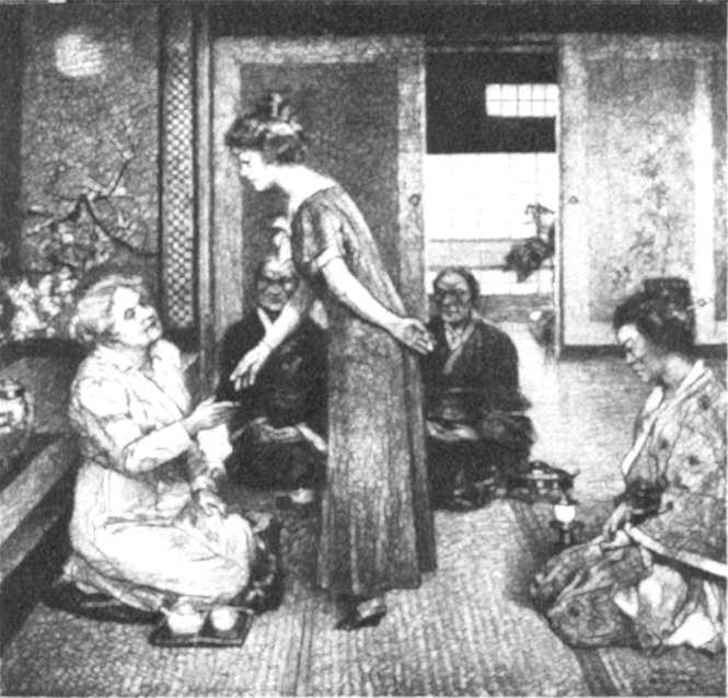 One night I went to church and heard a missionary from Japan speak. My goodness! how that man could say words! His appeal for workers to go to the Flowery Kingdom was as convincing as the hump on his nose, as irresistible as the fire in his eyes. The combination ended in my coming as a teacher to the eager Nipponese, who were all athirst for English. Japan I knew was a country all by itself, and not a slice off of China; that it raised rice, kimonos and heathen. Otherwise it was only a place on the map. Whatever the new [Pg 7]country might hold, at least, I thought, it would open a door that would lead me far away from the drab world in which I lived.
