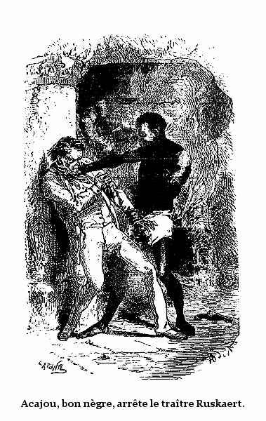Corcoran frappa sur un gong. Aussitôt Ali s'avança. C'était, on s'en souvient, le plus brave et le plus fidèle des serviteurs d'Holkar, et c'est à lui qu'était confiée la garde de Louison.