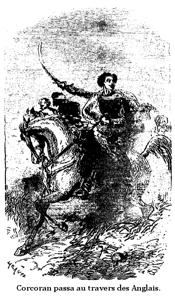 En revanche, les journaux anglais déclarèrent unanimement que ce Corcoran était un misérable aventurier, bandit de profession, qu'il avait dérobé le précieux manuscrit du Gouroukaramta à un voyageur anglais dans les montagnes des Ghâtes, et qu'il avait fait alliance avec Nana-Sahib pour assassiner tous les Anglais de l'Inde.