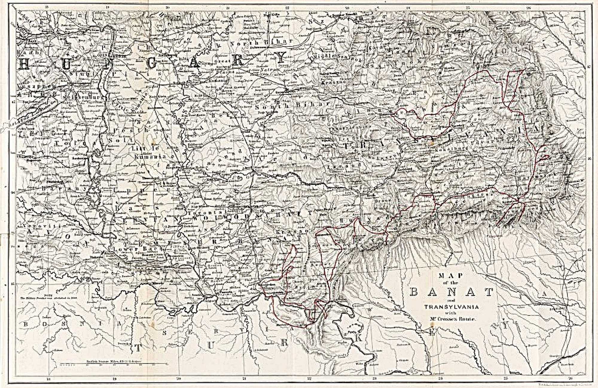 | Map of the Banat and Transylvania with Mr Crosse's route. |