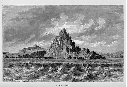 From Rio Janeiro Madame Pfeiffer sailed in an English ship, the John Renwick, on the 9th of December, bound for Valparaiso in Chili. She kept to the south, touching at Santos, where the voyagers p. 53celebrated New-Year’s Day, and reaching the mouth of the Rio Plata on the 11th of January. In these latitudes the Southern Cross is the most conspicuous object in the heavens. It consists of four stars of much brilliancy, arranged in two diagonal rows. Late in the month the voyagers sighted the sterile shores and barren mountains of Patagonia, and next the volcanic rocks, wave-worn and wind-worn, of Tierra del Fuego. Through the Strait of Le Maire, which separates the latter from Staten Island, they sailed onward to the extreme southern point of the American continent, the famous promontory of Cape Horn. It is the termination of the mighty mountain-chain of the Andes, and is formed of a mass of colossal basaltic rocks, thrown together in wild disorder, as by a Titan’s hand.