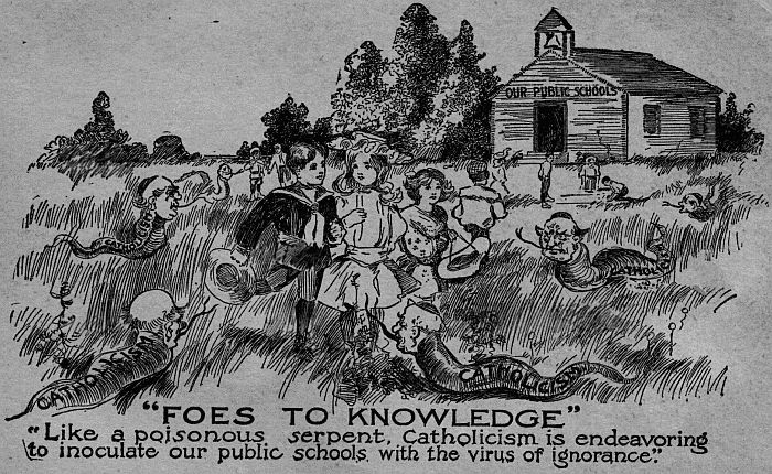 Many, many years ago my faith was shaken by what I had seen with my own eyes and heard with my own ears, but I nursed my religious belief from my mother's bosom; my religion was born and bred in my bones; every drop of blood in my person was electrified in childhood by the cungerings of Catholic legerdemain, and I was taught at my[Pg 21] mother's knee to believe that there was no other church that had a ghost of a chance of eternal salvation but the Catholic Church, and I was taught that all Protestants were heretics and abominable in the sight of God and sure of eternal damnation, unless they turned from their sins and joined the Catholic Church.