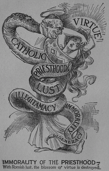 At this point in my religious training I perceived the nonsense of celibacy, and the Apostle's injunction: "Nevertheless, to avoid fornication, let every man have his own wife, and let every woman have her own husband." (I Cor. 7:2.) But the teachings of my childhood caused me to believe that it would be sacrilegious upon my part to even allow myself to believe that the Pope of Rome could possibly make a mistake, therefore I did as all true Catholics are expected to do, and forced myself to believe that all of the abominations practiced by this church were godly.