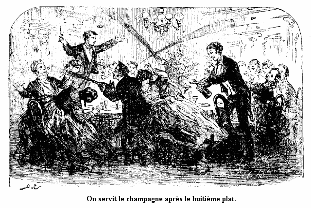 Après le lapin vint la galette; mais les appétits devenaient plus modérés; la conversation recommença, lente d'abord, puis animée ensuite.