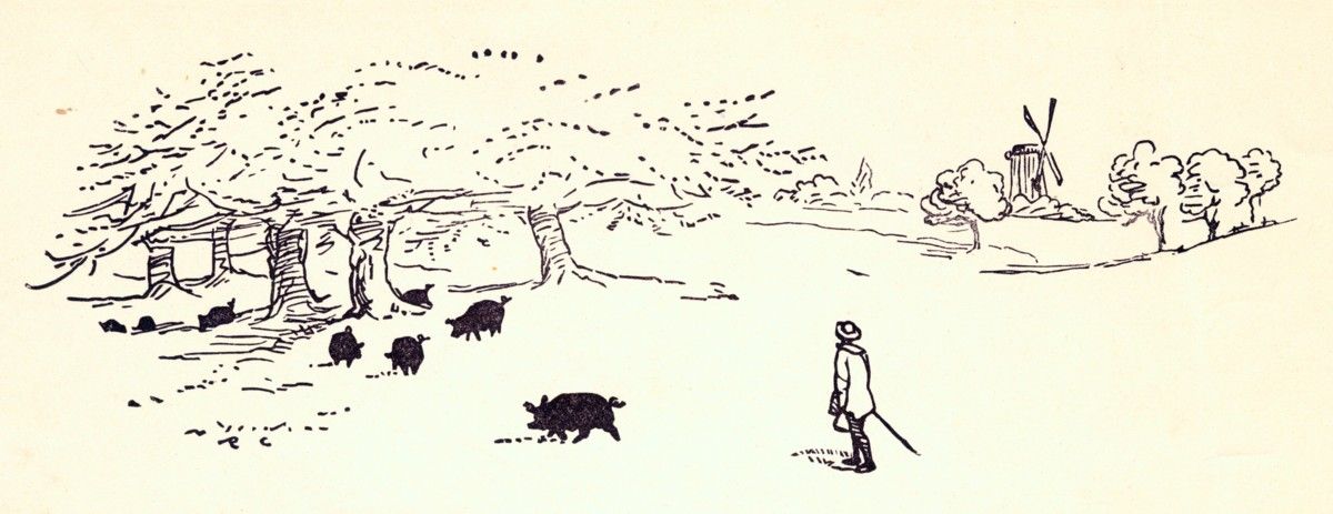 | With a Grunt-grunt here, and a Grunt-grunt there, | |