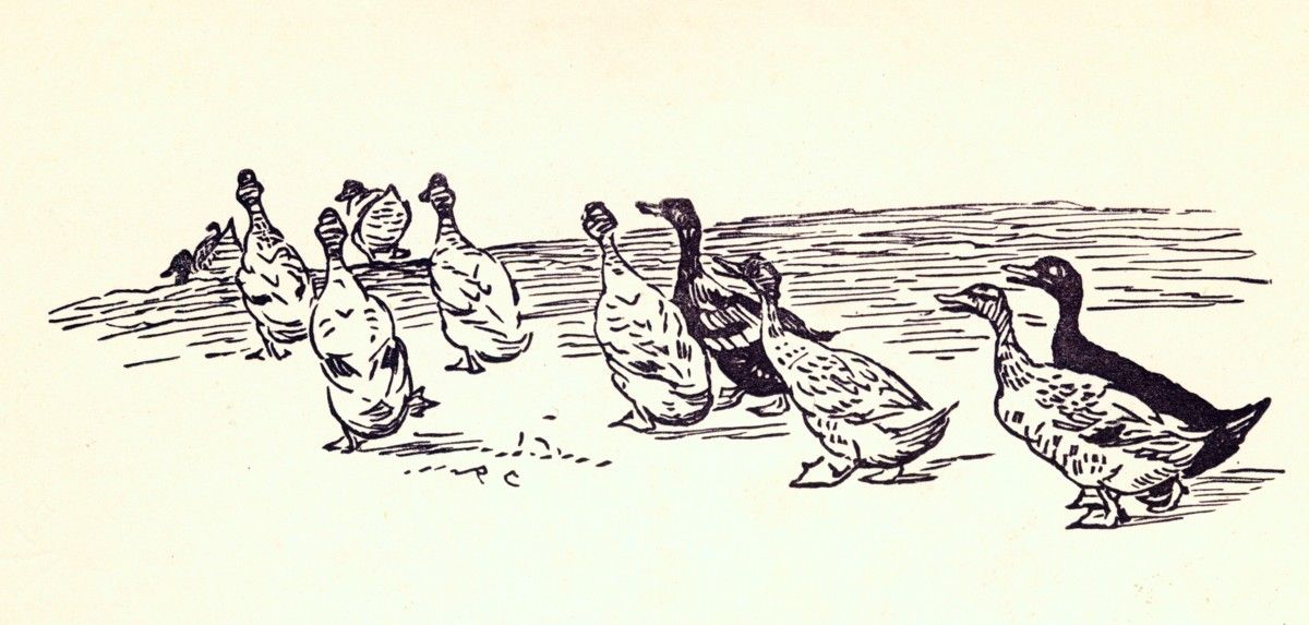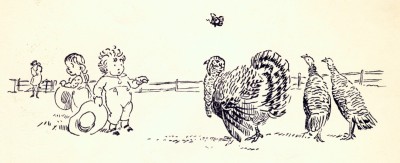 | With a Gobble-gobble here, and a Gobble-gobble there, | |