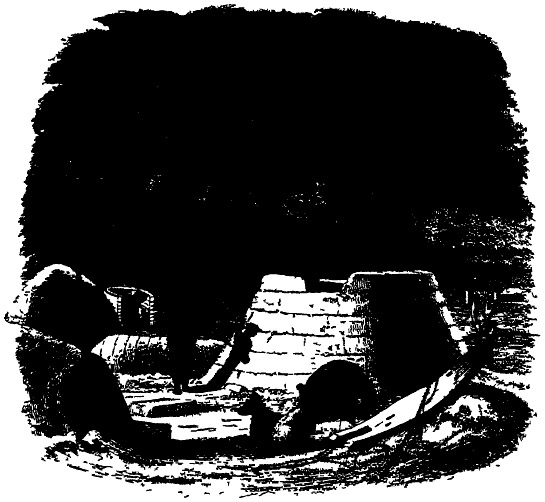 Their winter houses are low, long, ill-constructed huts, inhabited by several families, and abominably filthy; they are dug deep in the earth, but the walls above the surface never [xvii]exceed three feet in height, the roof is elevated in the middle, and the windows are placed to look to the south: the entry can only admit a person to crawl in; on one side of it is placed the kitchen, and on the other the dog-kennel, but no partition separates the biped from the quadruped inhabitant. If constrained to travel in winter, or to remain at a distance from their usual homes, they build houses of snow, which afford them a tolerably comfortable temporary abode. These habitations are very ingeniously constructed; they first search out a heap of firmly frozen snow, next they trace out a circular figure, of whatever size they think requisite, and then proceed with their long thin knives, to cut out square slabs, about three feet in length, two in breadth, and one in thickness, and gradually contracting as they rise, they form a dome about eight feet high; within, they leave an elevation all round the walls of about twenty inches, which, when covered with skins, serves both for a seat and a sleeping place; a piece of ice serves for a window, and in the evening they close their door with a board of snow; a lamp suspended from the roof gives light and heat to the apartment.