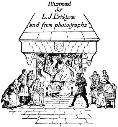 With the coming of the Saxons, higher[32] revelry reigned, and a Saxon observance of Yule-tide must have been a jolly sight to see. In the center of the hall, upon the open hearth, blazed a huge fire with its column of smoke pouring out through an opening in the thatched roof, or, if beaten by the wind, wandering among the beams above. The usually large family belonging to the house gathered in this big living-room. The table stretched along one side of the room, and up and down its great length the guests were seated in couples. Between them was a half-biscuit of bread to serve as a plate. Later on this would be thrown into the alms-basket for distribution among the poor.