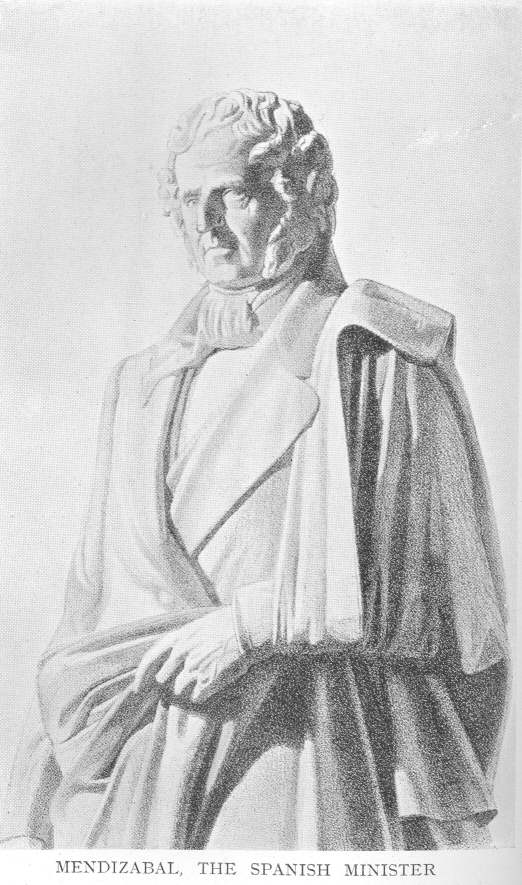 In spite of this, Borrow said in the same book that this would probably be the last occasion he would have to speak of the Gypsies or anything relating to them. In “The Bible in Spain,” written and revised several years later, he changed his mind. He wrote plenty about Gypsies and still more about himself. When he wished to show the height of the Spanish Prime Minister, Mendizabal, he called him “a huge athletic man, somewhat taller than myself, who measure six feet two without my shoes.” He p. 11informed the public that when he met an immense dog in strolling round the ruins above Monte Moro, he stooped till his chin nearly touched his knee and looked the animal full in the face, “and, as John Leyden says, in the noblest ballad which the Land of Heather has produced:—