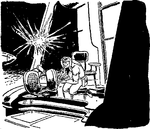 While Captain Strong and the members of the Arcturus unit strapped themselves into acceleration cushions, Tom conducted a routine check of the many gauges on the great control panel before him. Satisfied, he flipped open the intercom and called, "All stations, check in!"