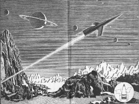 As command cadet of the Polaris, Tom climbed up to the control deck, and strapping himself into the command pilot's seat, prepared to get under way. Astro, the power-deck cadet who could "take apart a rocket engine and put it back together again with his thumbs," thundered below to the atomic rockets he loved more than anything else in the universe. Roger Manning, the third member of the famed Polaris unit, raced up the narrow ladder leading to the radar bridge to take command of astrogation and communications.