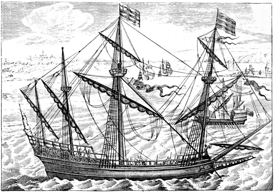 "On Whitsunday Eve, being the 24 of May, 1572," the two ships "set sayl from out of the Sound of Plimouth," with intent to land at Nombre de Dios (Name of God)[4] a town on the northern coast of the Isthmus of Darien, at that time "the granary of the West Indies, wherein the golden harvest brought from Peru and Mexico to Panama was hoarded up till it could be conveyed into Spain." The wind was steady from the north-east the day they sailed, so that the watchers from the shore must soon have lost sight of them. No doubt the boats of all the ships in the Sound came off to give the adventurers a parting cheer, or, should they need it, a tow to sea. No doubt the two ships were very gay with colours and noisy with the firing of farewells. Then at last, as the sails began to draw, and the water began to bubble from the bows, the trumpeters sounded "A loath to depart," the anchor came to the cathead, and the boats splashed back to Plymouth, their crews jolly with the parting glasses.