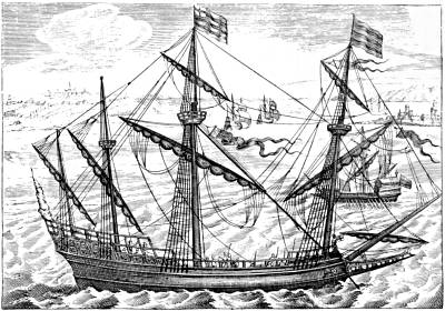 The ship in the foreground may be Drake's flagship, the Bonaventure