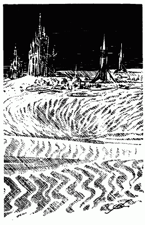 Martha Dane paused, looking up at the purple-tinged copper sky. The wind had shifted since noon, while she had been inside, and the dust storm that was sweeping the high deserts to the east was now blowing out over Syrtis. The sun, magnified by the haze, was a gorgeous magenta ball, as large as the sun of Terra, at which she could look directly. Tonight, some of that dust would come sifting down from the upper atmosphere to add another film to what had been burying the city for the last fifty thousand years.
