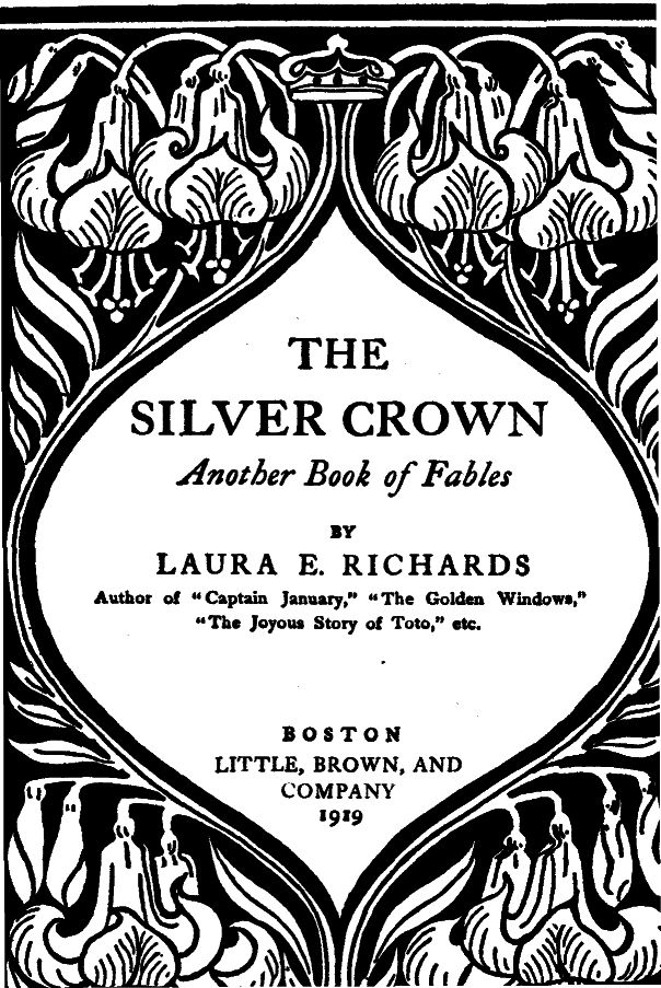 THE SILVER CROWN Another Book of Fables BY LAURA E. RICHARDS Author of "Captain January," "The Golden Windows," "The Joyous Story of Toto," etc. BOSTON LITTLE, BROWN, AND COMPANY 1919 |