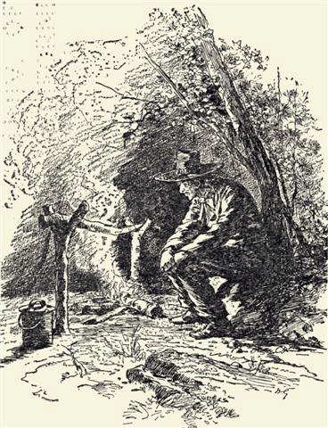 All this time Darkey Jim had been sleeping soundly, wrapped in his blankets, with his feet to the fire. There was never an hour, day or night, when this lively African could not loll at full length, in sunshine or shade, and forget his cares, if cares he ever had, in less than three minutes. In this case, despite Sieber's warning, which he had overheard, he simply took note of the fact that the captain and Corporal Pike were looking after things and that was enough for him. There was no use in worrying when "Marsa Gwin" was on guard, and within an hour from the time he had had his substantial supper, Jim was snoring melodiously, with his head buried in his arms.